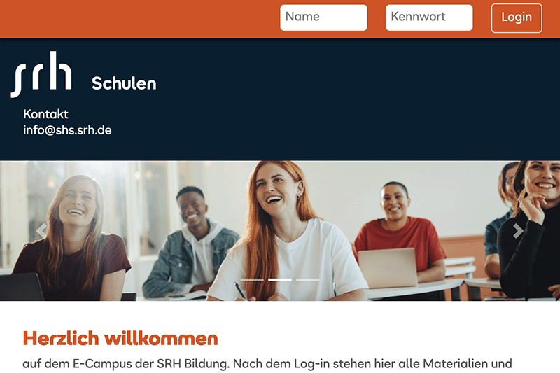 Die Zugangsdaten werden über die SRH-IT verwaltet. Wenn du dein Passwort vergessen hast oder der Login nicht funktioniert, wende dich an deine(n) IT-Lehrer(in) oder deine(n) Klassenlehrer(in). Sie können mit der IT-Abteilung Kontakt aufnehmen.